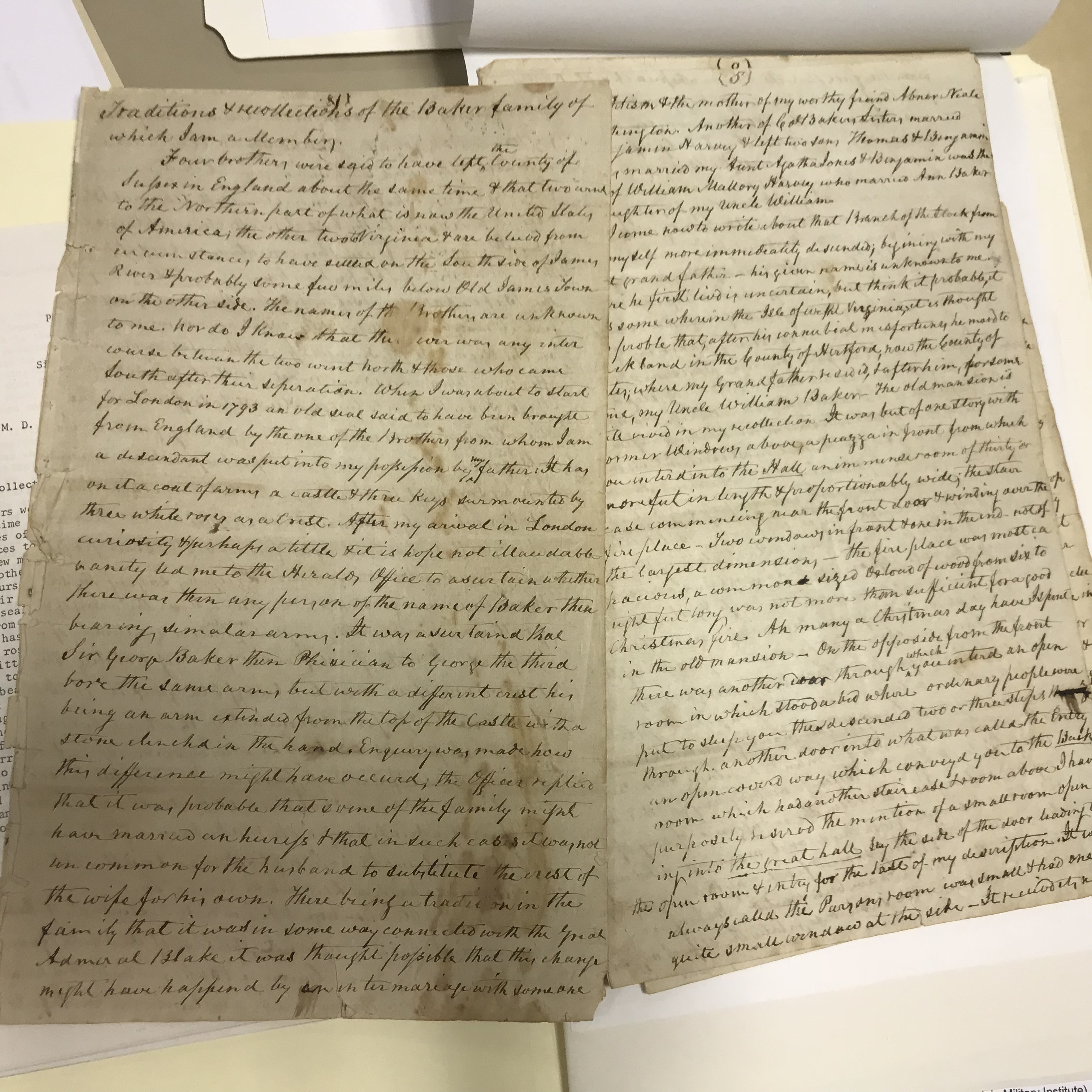 "I now come to write about the branch of the stock from which I myself more immediately descended," S.J. Baker